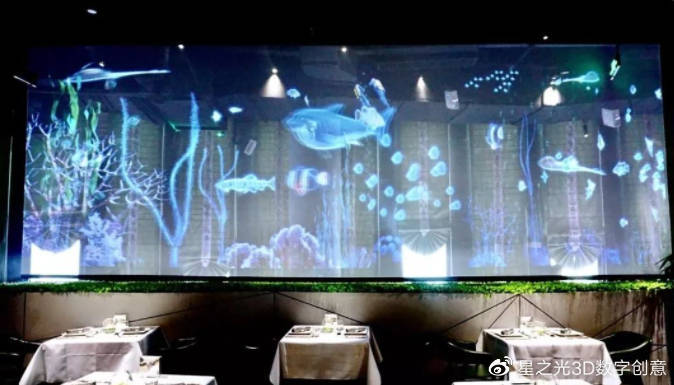 3D全息投影餐廳具有其獨(dú)特的魅力,它可以讓你時(shí)而置身海洋世界,時(shí)而有群花綻放,時(shí)而有亭臺樓閣,讓你在真實(shí)與虛構(gòu)、時(shí)間與空間中品味美食、美酒、音樂人生!