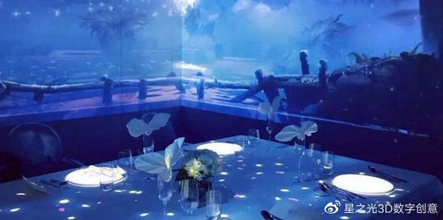 每一家餐廳的靜謐時場景都是可以定制的,可以是沉浸式的海底世界,也可以是沉浸式的花海、沉浸式森林等等,可以按照客人的喜好,在不同的節(jié)日期間進行切換。