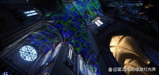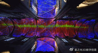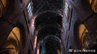 法國數(shù)字藝術(shù)家 Michel Chevalier在法國羅德茲大教堂內(nèi)設(shè)計了一套3D投影儀,它與大質(zhì)量恒星爆發(fā)的理念相結(jié)合,向建筑中心投射出30種不同色彩的光線。