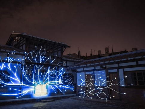 古建燈光秀|懸空藍色軌道似宇宙星空 老宅光影秀超震撼